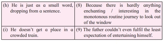Given below are the ideas conveyed through the poem. Match the pairs and draw out the hidden meaning from those expressions: