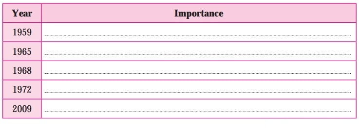 1. Write the importance of the years given below, with reference to World Heritage Sites.