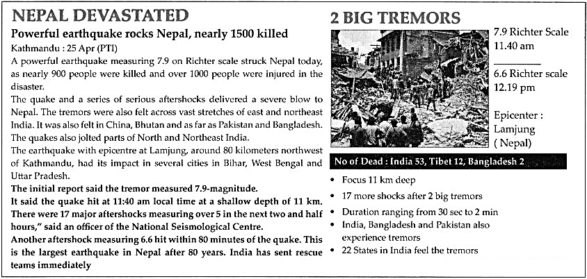 (a) Buildings collapsed at the foothills of the Himalayas because of an earthquake. Before collapsing they were moving forward and backward.