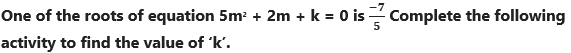 If x = 5 is a root of equation kx2 – 14x – 5 = 0, then find the value of k by completing the following activity. (Textbook pg, no. 33)