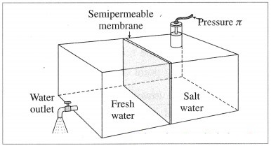 (1) Definition : The osmotic pressure is defined as the excess mechanical pressure required to be applied to a solution separated by a semipermeable membrane from pure solvent or a dilute solution to prevent the osmosis or free passage of the solvent molecules at a given temperature. The osmotic pressure is a colligative property.