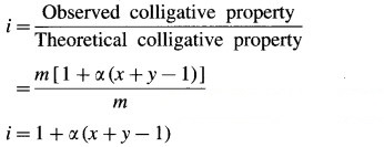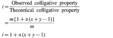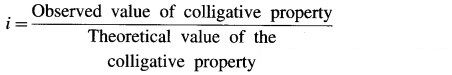 Definition of the van’t Hoff factor, i : It is defined as a ratio of the observed colligative property of the solution to the theoretically calculated colligative property of the solution without considering molecular change.