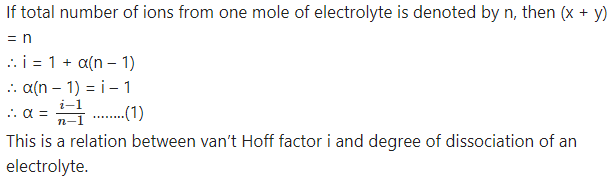 Consider 1 dm3 of a solution containing m moles of an electrolyte AxBy. The electrolyte on dissociation gives number of Ay+ ions and y number of Bx- ions. Let α be the degree of dissociation.
