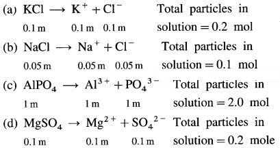Which of the following solutions will have maximum boiling point elevation and which have minimum freezing point depression assuming the complete dissociation? (a) 0.1m KCl (b) 0.05 m NaCl (c) 1 m AlPO4 (d) 0.1 m MgSO4.