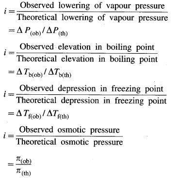 - When the solute neither undergoes dissociation or association in the solution, then, i = 1