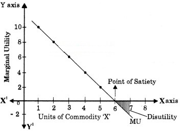 The shaded portion of the diagram shows negative utility. It is because, beyond a certain level, further consumption of a commodity results into disutility.