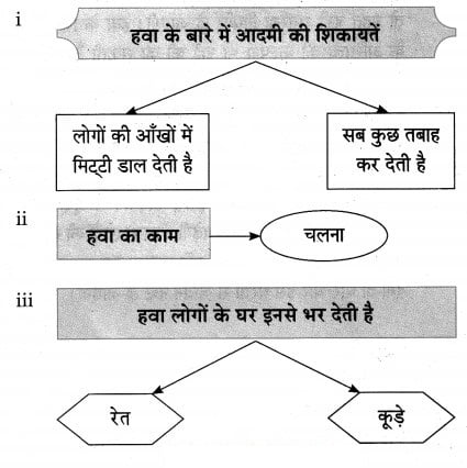 i. जब हवा तेजी से चलती है तब वह अपने साथ रेत, मिट्टी, कूड़ा आदि हल्की चीजें साथ लेकर उड़ती है।