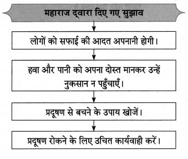 हवा इन आरोपों को झूठा बताते हुए कहती है कि कारखानों से निकलने वाली गैस व गंदगी के कारण वह बदबूदार हो गई है। अंत में महाराज कहते हैं कि इसमें हवा का कोई भी कसूर नहीं है। महाराज द्वारा लोगों को नसीहत दी जाती है कि वे सफाई की आदत को अपनाएँ। हवा व पानी को अपना दोस्त मानकर उन्हें दूषित होने से बचाएँ। यदि ऐसा होगा; तो ही लोगों का भला होगा।