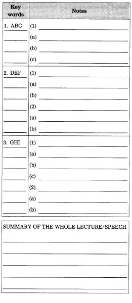 (We have given here a few of the methods employed in Note-making/Note-taking in blank formats. Students may experiment and find out the most useful method/ methods on their own. The selection of method largely depends upon the personal trait, taste and talent of j each individual student.)