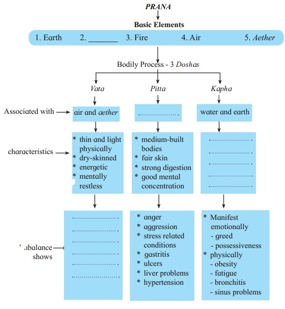 Now let’s complete the following diagram that represents Prana and its elements: (The answers are given directly. For the relevant article, refer to page 149 of the textbook.)