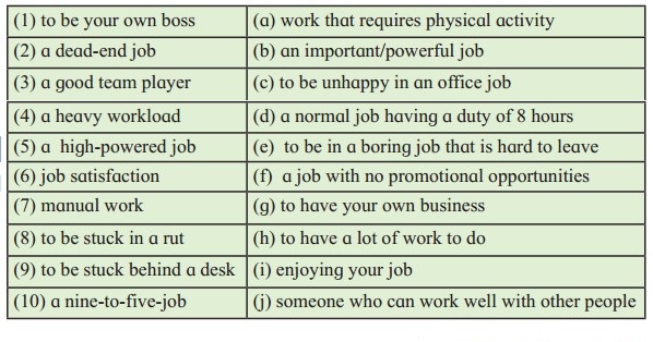 Match the job terms with their meanings.