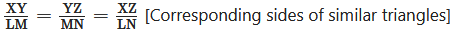 ∴ XYPQ=YZQR=XZPR [Corresponding sides of similar triangles]