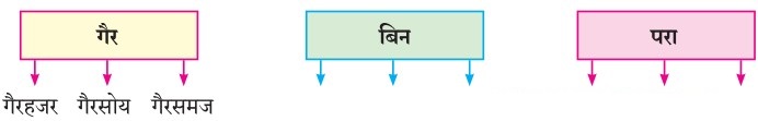 “गैर” हा उपसर्ग लावून तयार झालेले शब्द खाली दिले आहेत. “बिन”, “परा” हे उपसर्ग लावून तयार होणारे शब्द लिहा.