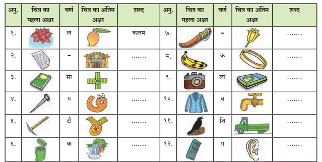 चित्र की सहायता से बारहखड़ी के शब्द बनाकर लिखो।