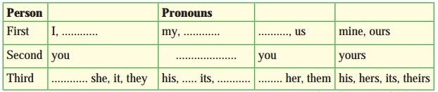 2. Complete the following chart of personal pronouns using words from the brackets.