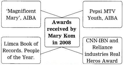5. Glance through the text and find the special qualities of Mary Kom. Complete the web by putting different qualities of Mary Kom in the boxes: (Answers are directly given.)