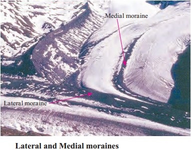 - The material deposited along the banks of a glacier is called Lateral moraine.