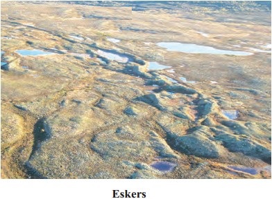 - The depositional work of glacier produces landforms like drumlins, eskers, etc.
