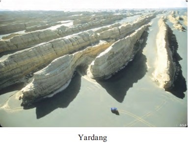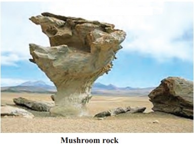 - This leads to formation of mushroom rocks, deflation hollows, yardangs, etc.