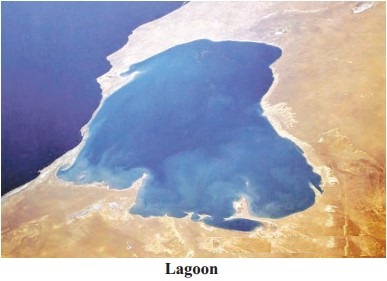- The brackish water separated from the seawater by sand bars and lying in the areas between the coast and bars is called a lagoon.