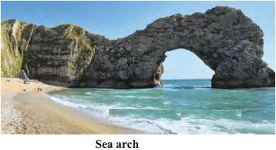 - The basal portions of the headlands get severely eroded due to the continuous attack of sea waves. This leads to the erosion of the rocks on a large scale.