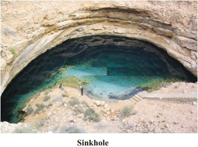 - Landforms like sinkholes, limestone caves, stalactites and stalagmites are formed.