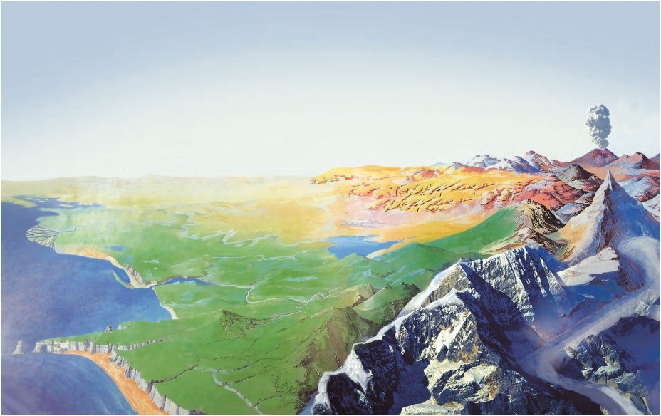 - At the foothills, the change in the slope causes deposition of coarse sediments.