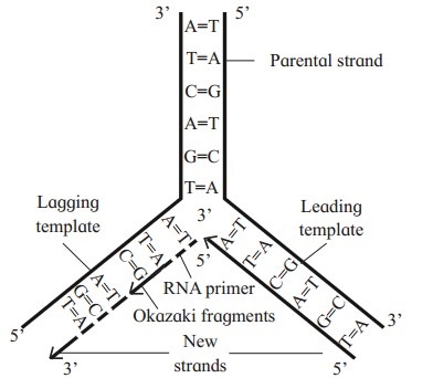 - The enzyme DNA polymerase catalyses synthesis of new complementary strand always in 5′ – 3′ direction.