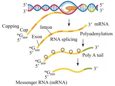 - As the m-RNA grows, the transcribed region of DNA molecule becomes spirally coiled and regains double helical form.