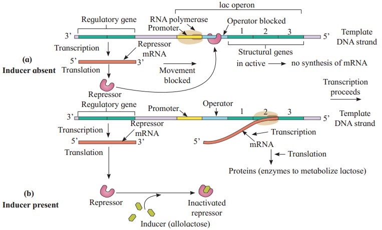 - When operator gene is turned on by an inducer, the structural genes get transcribed to form m-RNA.