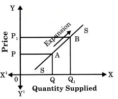 - When the supply of a commodity rises only due to the rise in the price of the commodity, then it is said to be extension in supply.