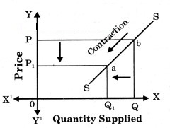 - Contraction of supply occurs when quantity supplied of a commodity falls due to a fall in price alone.