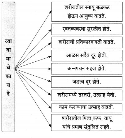 1. व्यायामाचे फायदे दर्शवणारा आकृतिबंध पूर्ण करा.