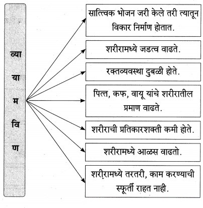व्यायाम न करण्याचे तोटे लिहून आकृती पूर्ण करा.