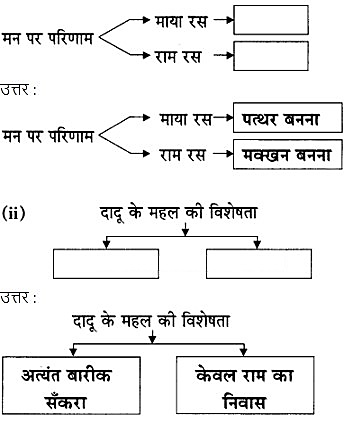(iii) केंद्रीय कल्पना : इन साखियों में कवि संत दादू दयाल जी ने ईश्वर भक्ति का मार्ग बताया है। ईश्वर को पूजने के लिए कहीं बाहर जाने की आवश्यकता नहीं है। ईश्वर मन के भीतर ही है। नामस्मरण करने से हमें मोक्ष प्राप्त होगा। वेद-पुराण पढ़ने से जीवन का सच्चा मार्ग नहीं मिलता बल्कि हृदय में जीवन और जगत के लिए प्रेम होना चाहिए यही कल्पना यहाँ कवि ने हमारे सामने रखी है।