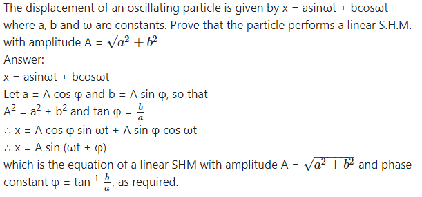 The general expression for the displacement of a particle in SHM at time t is x = A sin (ωt + α) … (1)