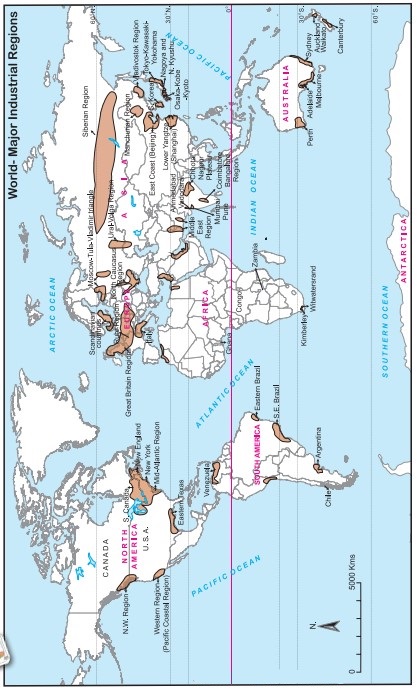 (vii) Major industrial regions are concentrated in Northern Hemisphere in the latitudinal belt of 30° North to 50° North latitudes. However, there is an exception of Siberian industrial region in Russia.