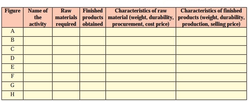 Observe the pictures given in the textbook figure. Identify the activities with which these figures are associated and complete the table.