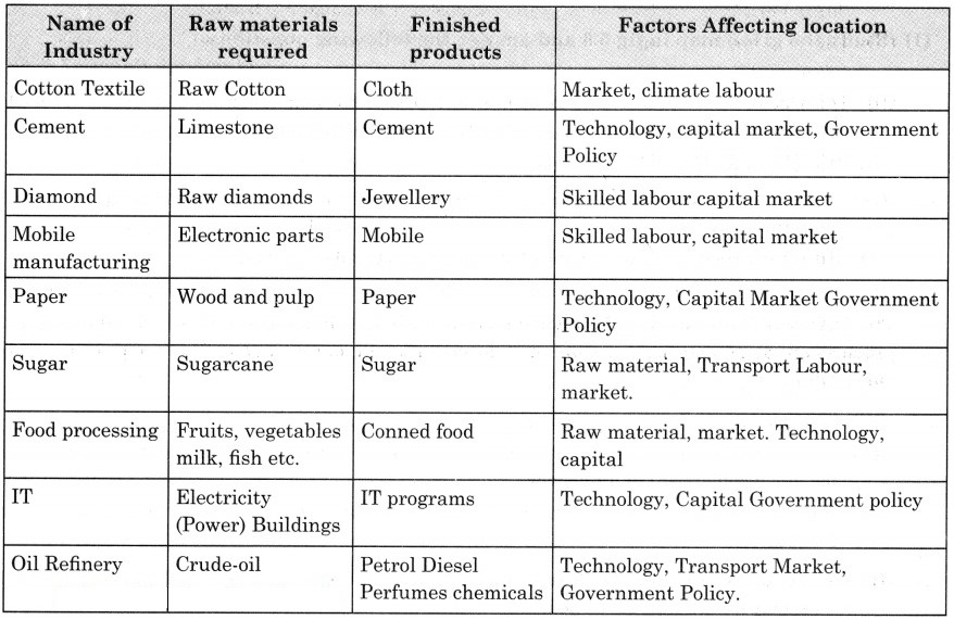 Availability of raw material is essential for the development of industries. Industries using perishable, heavy, bulky and weight-losing raw materials are located in the areas of source of raw materials. For example, sugar mills near sugarcane growing areas.