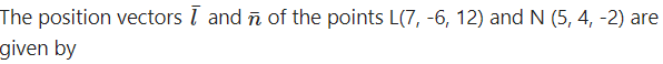 Find the position vector of midpoint M joining the points L (7, -6, 12) and N (5, 4, -2).