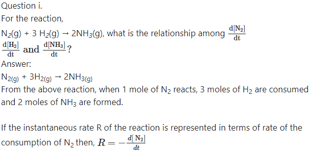 Hence the rate of reaction in terms of concentration changes in N2, H2 and NH3 may be represented as,