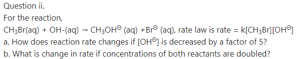 (a) Rate = R = k [CH3Br] x [OH–]