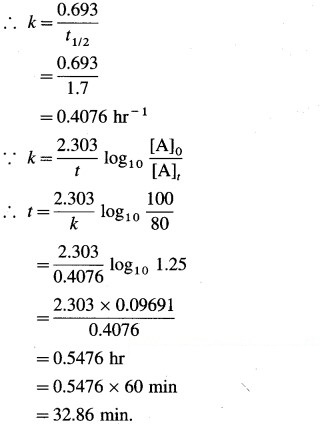 The half life of a first order reaction is 1.7 hours. How long will it take for 20% of the reactant to react? (32.9 min)