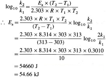 Given : k2 = 2kt, T1 = 303 K; T2 = 313 K; Ea = ?
