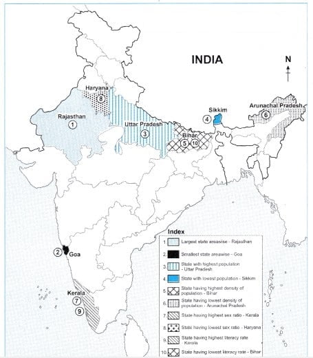 - Hence, India’s average population density is high i.e. 382 persons per sq. km.