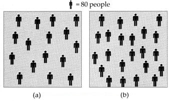 In the fig. (a) density of population is 7 persons per sq. km. The region is sparsely populated.