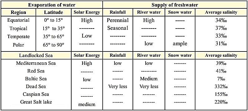 - Thus, the salinity of the seas is found to be higher in mid-latitudinal zones.