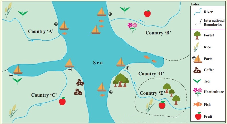 (iv) ‘E’ country is an island country, therefore it can carry trade with other countries by water transport.