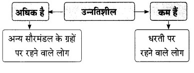 • अन्य ग्रहवासी: जी हाँ, तुमने सही पहचाना। मैं इस धरती का निवासी नहीं हूँ। मैं पृथ्वी से लगभग 15 हजार करोड़ कि.मी. की दूरी पर स्थित ग्रह से आया हूँ।