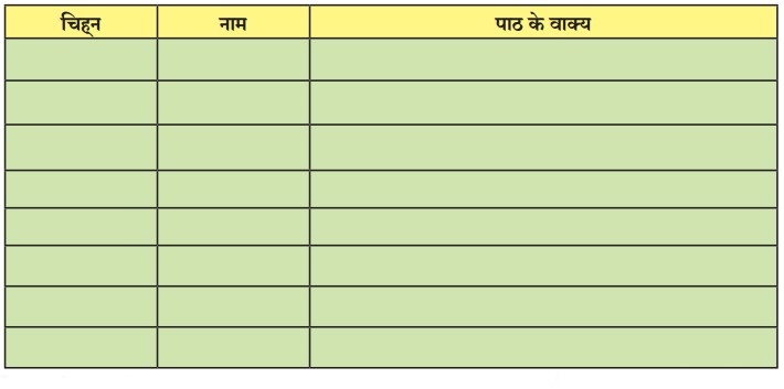 निम्न वाक्यों में कारक रेखांकित कर उनके भाषा बिंदु नाम और चिह्न लिखकर पाठ से अन्य वाक्य खो जकर तालिका में लिखिए।